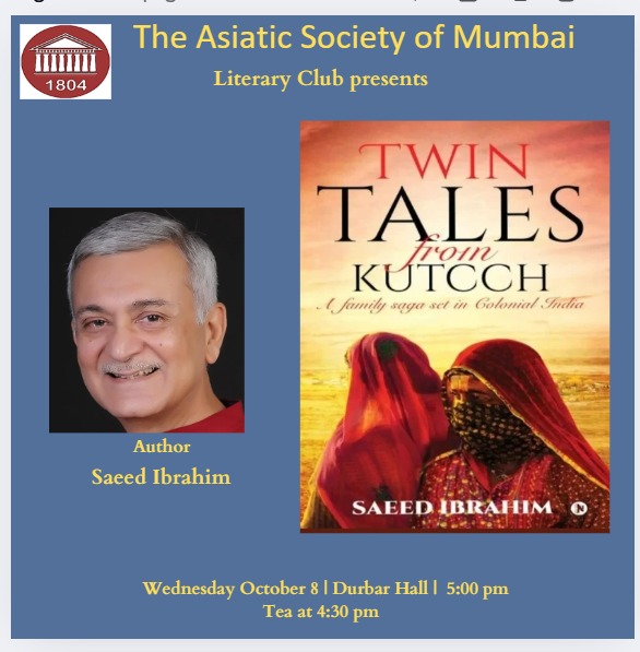 The Literary Club of the Asiatic Society of Mumbai cordially invites you to a presentation on the book Twin Tales from Kutcch at the Durbar Hall of the Asiatic Society of Mumbai, at 5.00 p.m. on Wednesday 8th October, 2025.