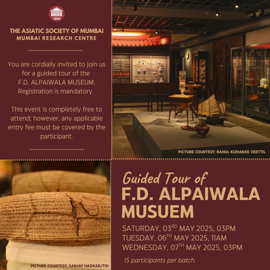 The Mumbai Research Centre of The Asiatic Society of Mumbai invites you to a Guided tour of the F.D. Alpaiwala Museum.