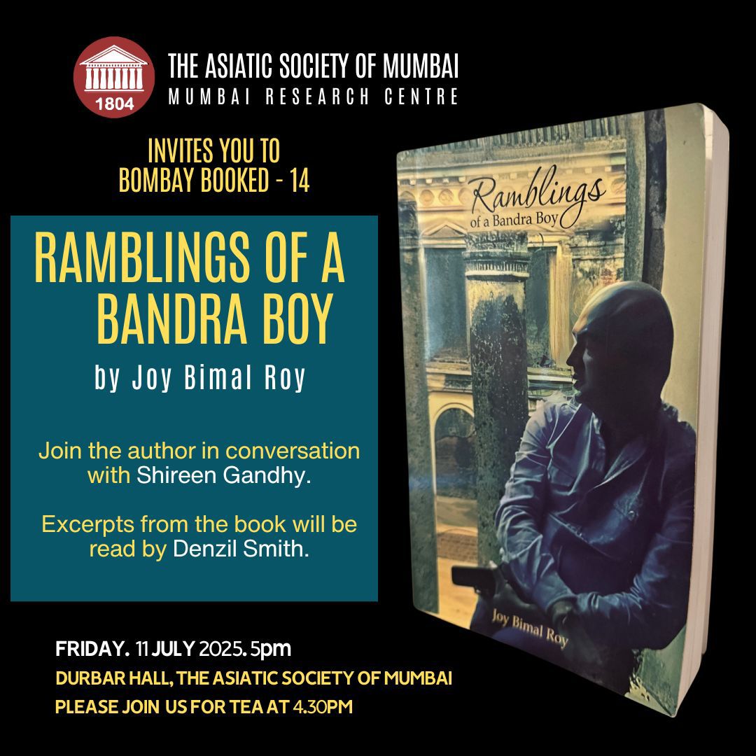 The Mumbai Research Centre of the Asiatic Society of Mumbai presents Bombay Booked - 14. This session will feature the book Ramblings of a Bandra Boy, by Joy Bimal Roy.