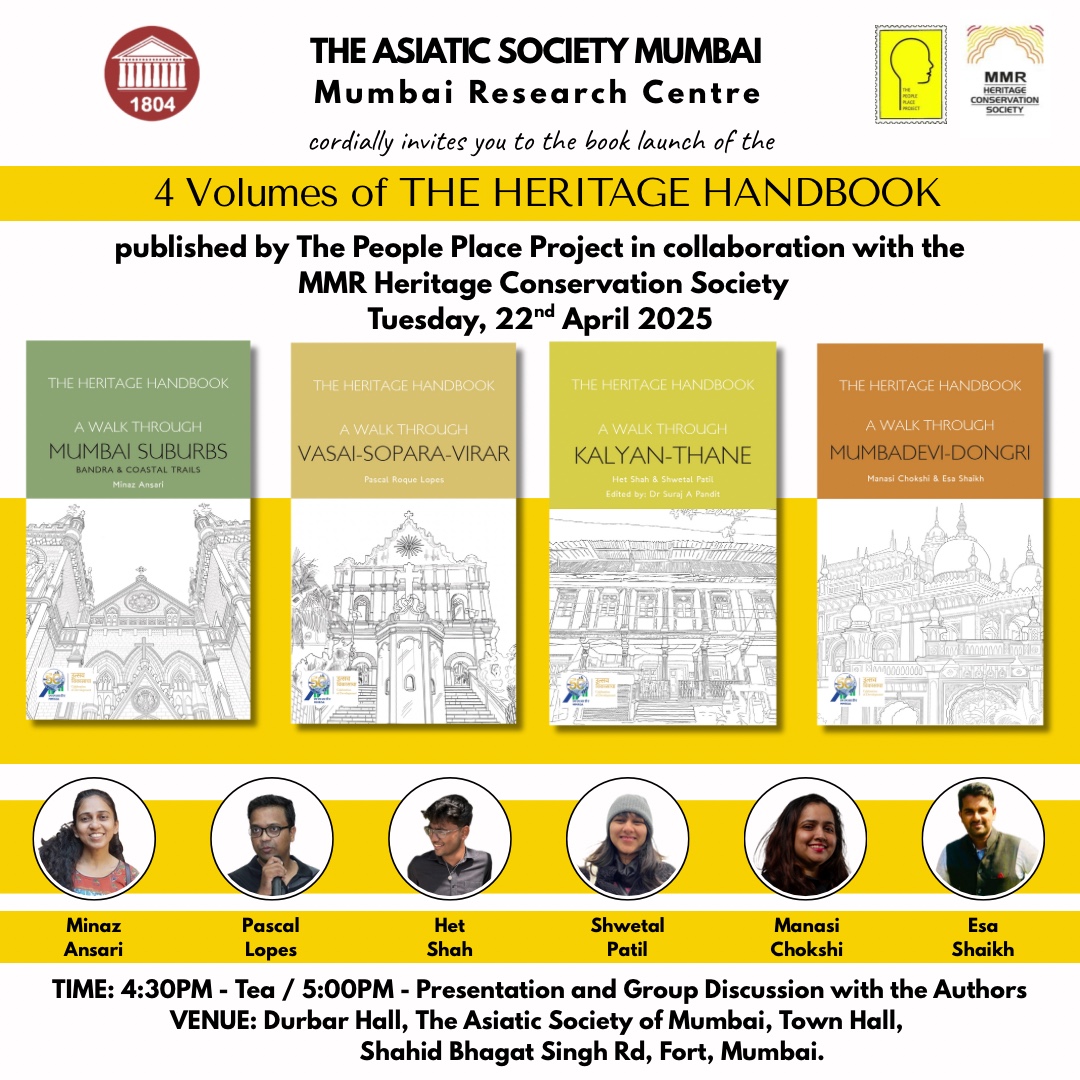 The Mumbai Research Centre of The Asiatic Society of Mumbai is pleased to invite you to the launch of the four-volumes of ‘The Heritage Handbook’, published by The People’s Project in collaboration with The MMR Heritage Conservation Society.