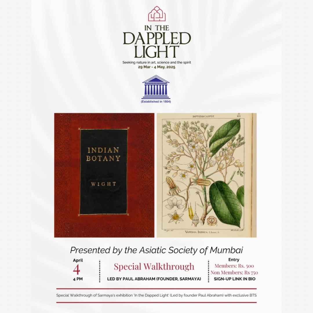 The Mumbai Research Centre of the Asiatic Society of Mumbai is delighted to invite you to a special exhibition walkthrough titled “In the Dappled Light” led by Paul Abraham, Founder, Sarmaya Arts Foundation.
