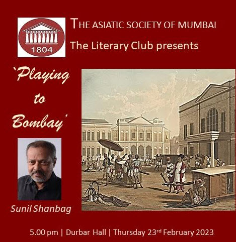 The Literary Club of the Asiatic Society of Mumbai is delighted to invite you to a presentation by eminent theatre personality Sunil Shanbag, ‘Playing to Bombay’ on Thursday 23rd February at 5 pm in the Durbar Hall of the Society.